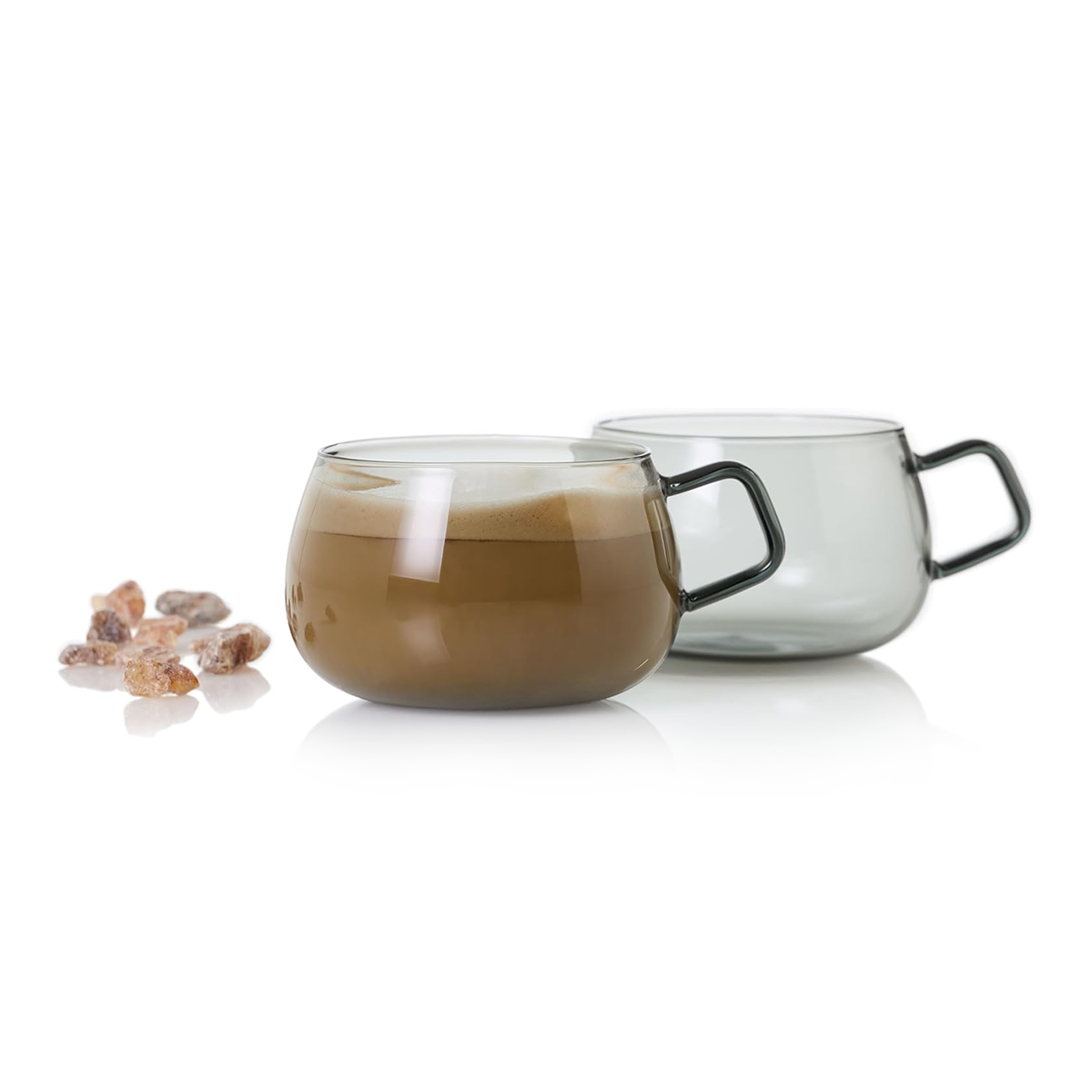 - Tassen-Set aus mundgeblasenem, hitzebeständigem, geschmacksneutralem Borosilikatglas