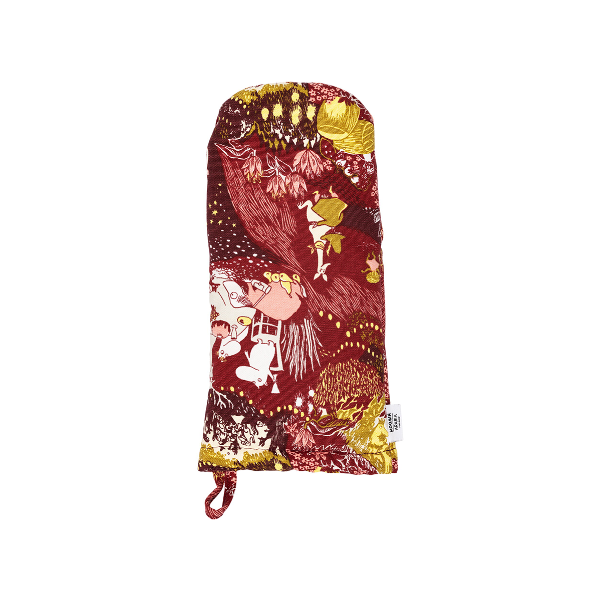 Topfhandschuh aus 100% weicher Baumwolle, bunt bedruckt und einer Füllung aus 70% Baumwolle und 30% Polyester.